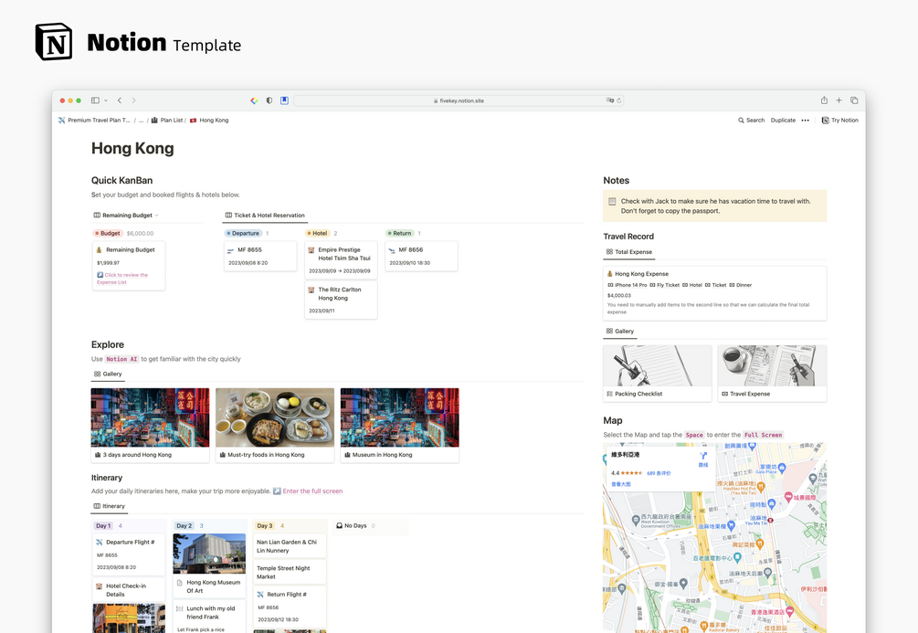 Premium Travel Plan - Notion Template